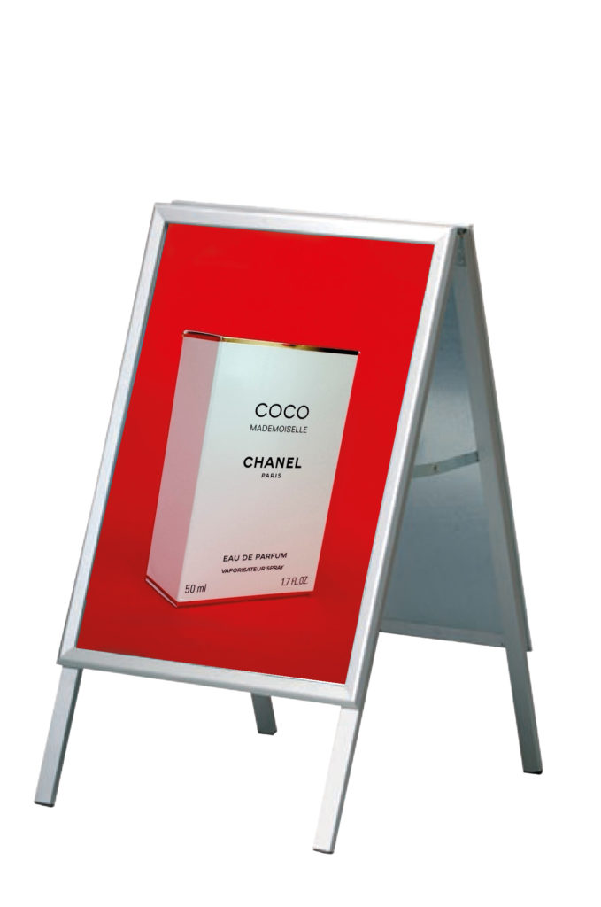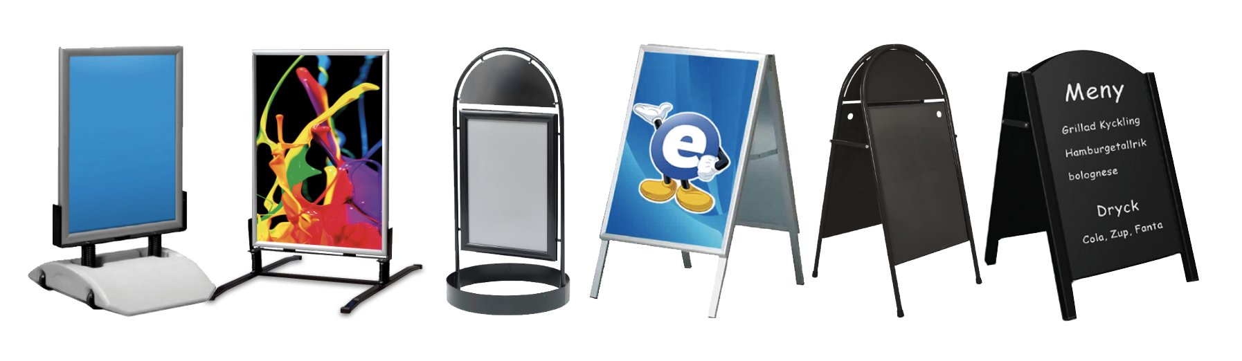 Detta skyltställ lämpar sig väl i lite trängre utrymmen.